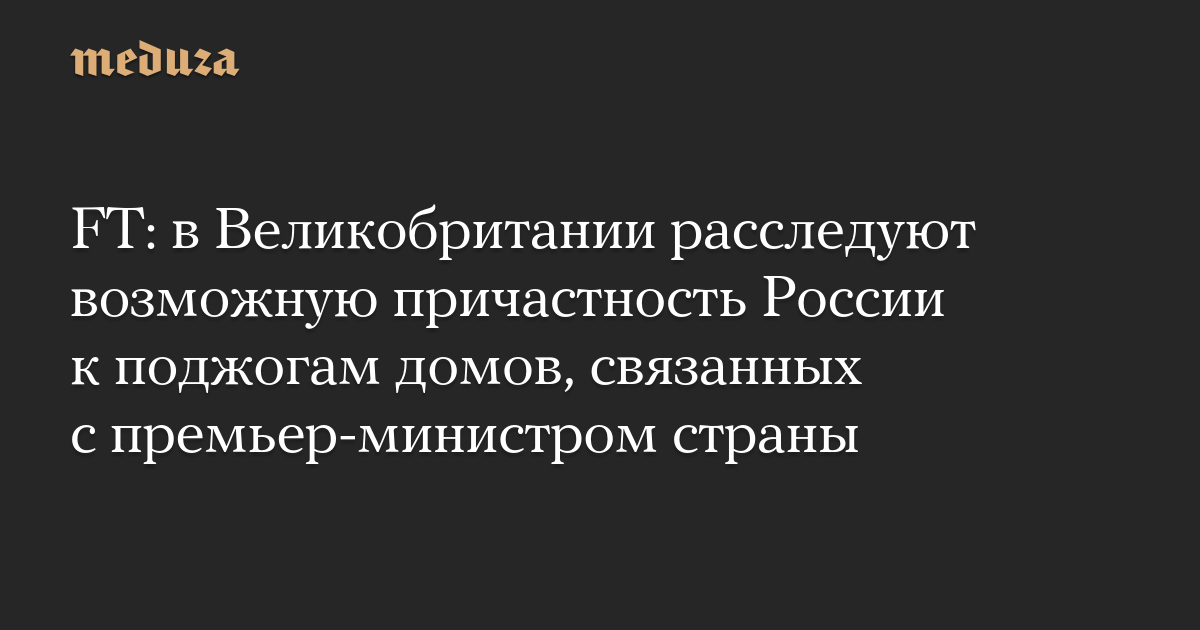FT: в Великобритании расследуют возможную причастность России к поджогам домов, связанных с премьер-министром страны