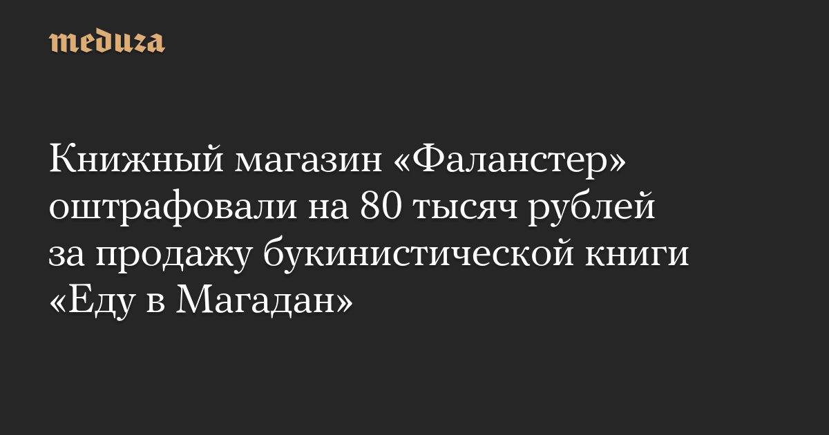Книжный магазин «Фаланстер» оштрафовали на 80 тысяч рублей за продажу букинистической книги «Еду в Магадан»