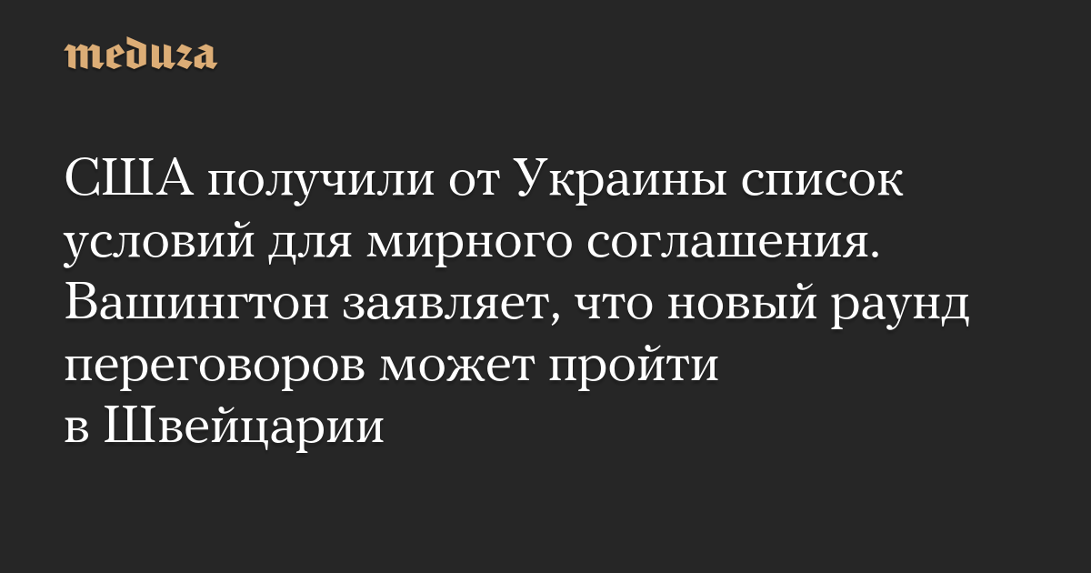 США получили от Украины список условий для мирного соглашения. Вашингтон заявляет, что новый раунд переговоров может пройти в Швейцарии