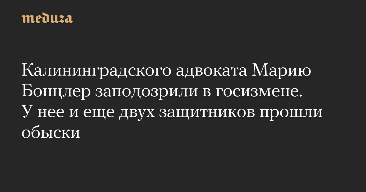 Среди тех, к кому пришли силовики, — Мария Бонцлер и Роман Морозов, которые защищали фигурантов политически мотивированных уголовных дел. В частности, они представляли интересы жителя Калининграда Игоря Барышникова, которого в итоге суд приговорил к семи с половиной годам по делу о «фейках» о российской армии. Саму Бонцлер в 2022 году штрафовали по протоколам о «дискредитации» армии РФ. Имя третьего адвоката не сообщается.