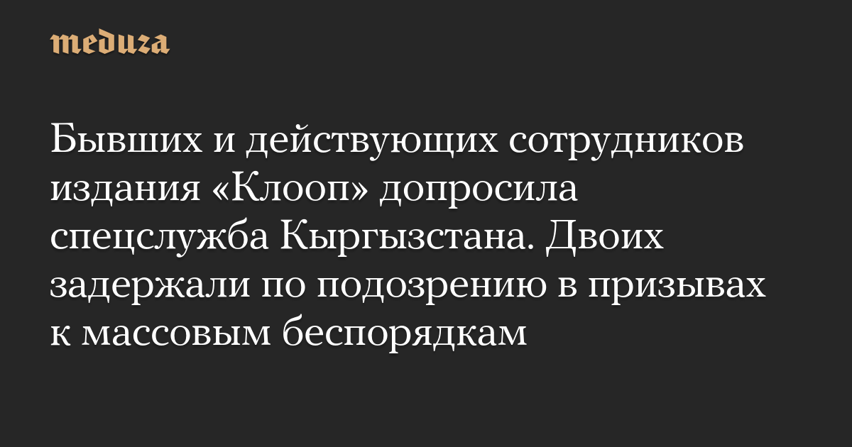 Бывших и действующих сотрудников издания «Клооп» допросила спецслужба Кыргызстана. Двоих задержали по подозрению в призывах к массовым беспорядкам