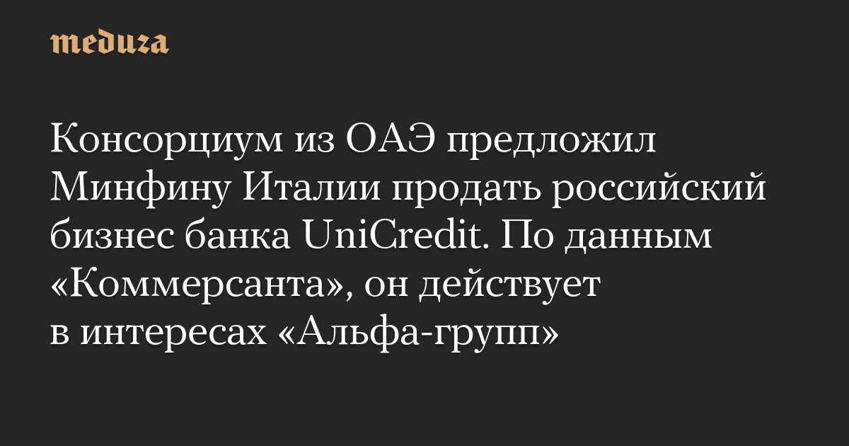 Консорциум из ОАЭ предложил Минфину Италии продать российский бизнес банка UniCredit. По данным «Коммерсанта», он действует в интересах «Альфа-групп»