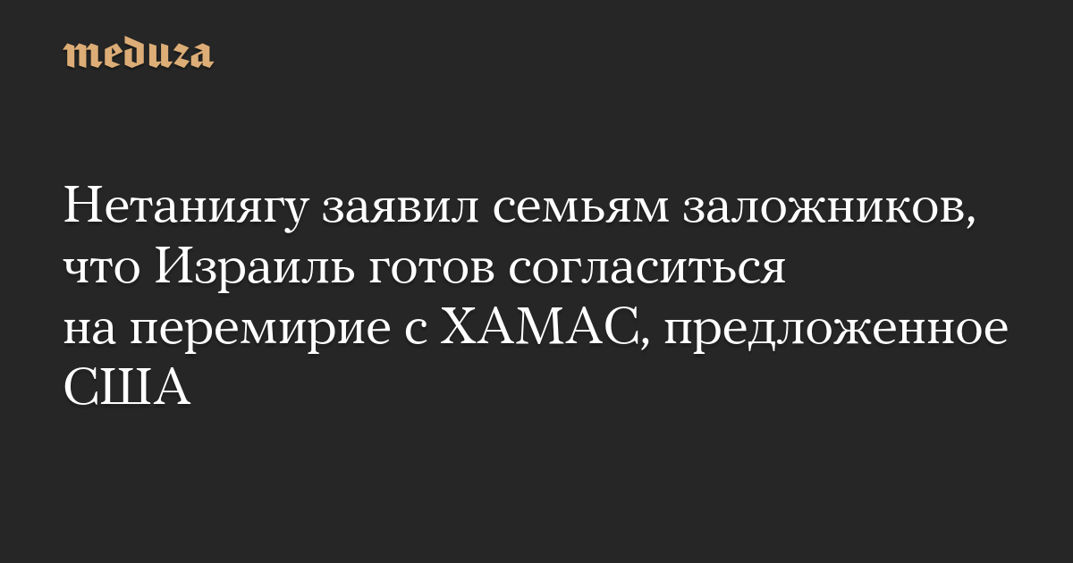 Нетаниягу заявил семьям заложников, что Израиль готов согласиться на перемирие с ХАМАС, предложенное США