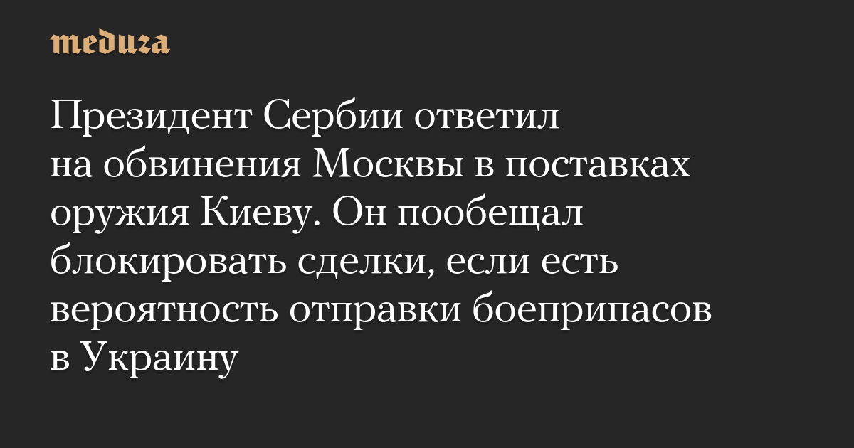 Президент Сербии ответил на обвинения Москвы в поставках оружия Киеву. Он пообещал блокировать сделки, если есть вероятность отправки боеприпасов в Украину