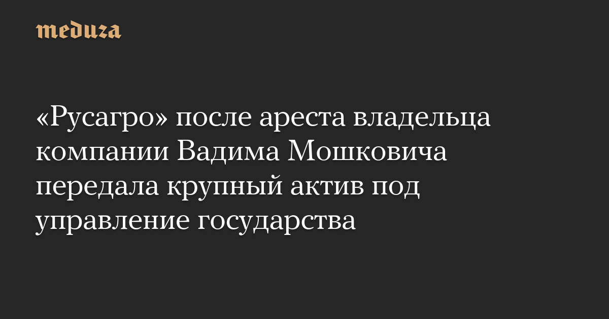 «Русагро» после ареста владельца компании Вадима Мошковича передала крупный актив под управление государства