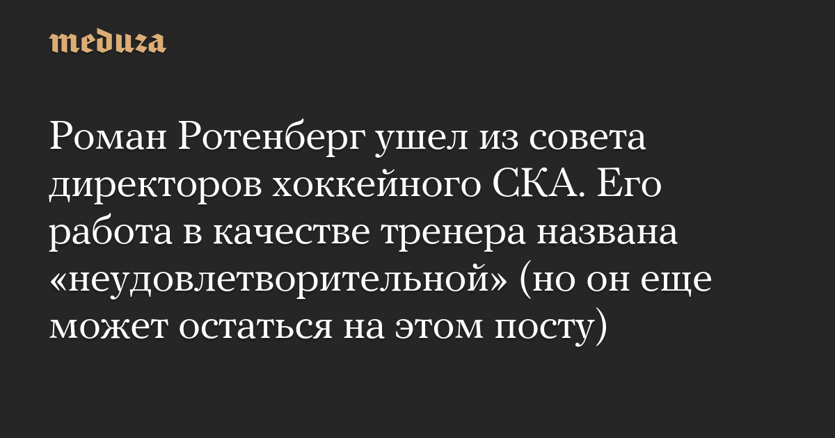 Роман Ротенберг ушел из совета директоров хоккейного СКА. Его работа в качестве тренера названа «неудовлетворительной» (но он еще может остаться на этом посту)