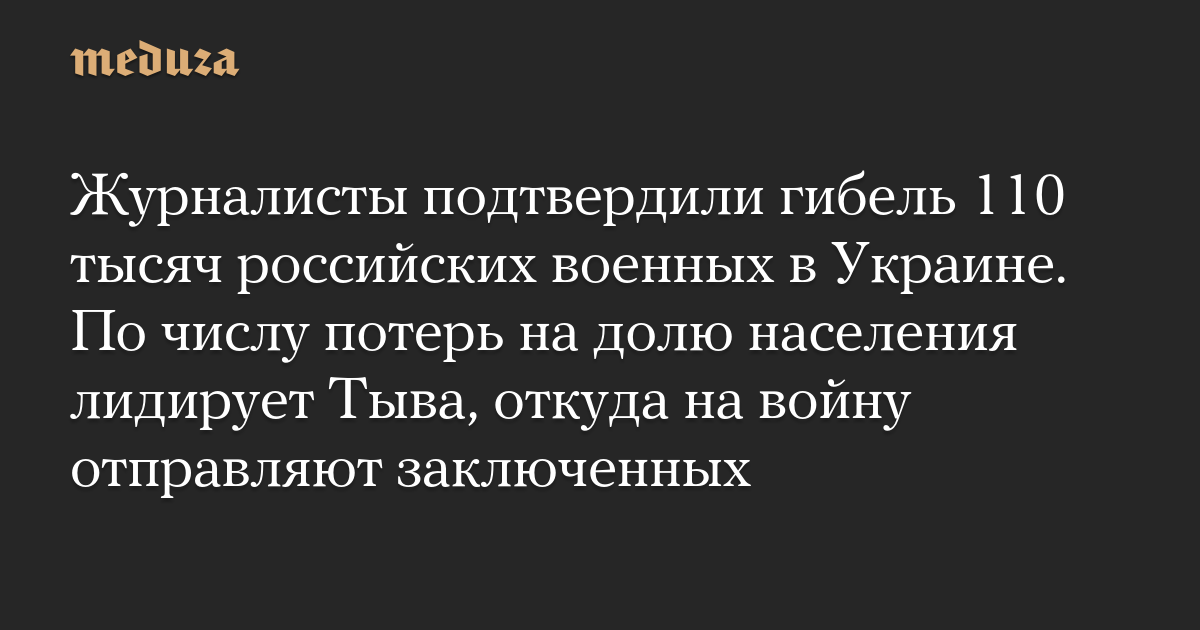 Журналисты подтвердили гибель 110 тысяч российских военных в Украине. По числу потерь на долю населения лидирует Тыва, откуда на войну отправляют заключенных