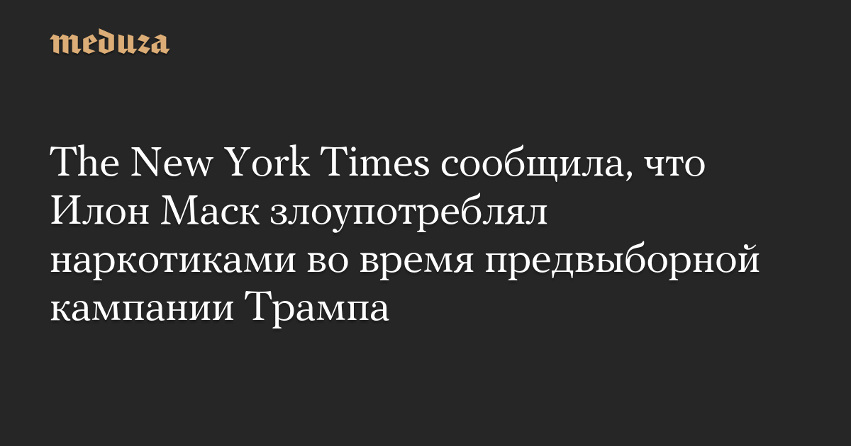 The New York Times сообщила, что Илон Маск злоупотреблял наркотиками во время предвыборной кампании Трампа