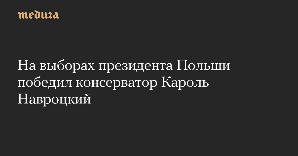 Во втором туре выборов президента Польши большинство голосов набрал Кароль Навроцкий, баллотировавшийся от оппозиционной консервативной партии «Право и справедливость».