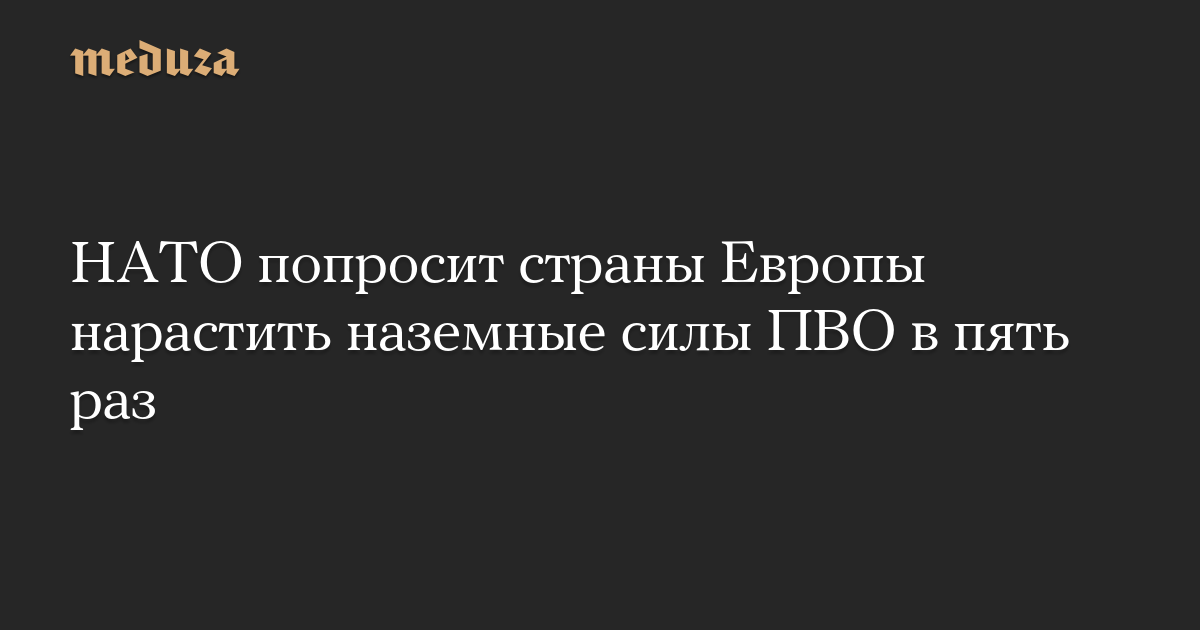 Североатлантический альянс потребует от европейских стран в пять раз увеличить наземные силы противовоздушной обороны, пишет Bloomberg со ссылкой на источники. Агентство утверждает, что таким образом НАТО стремится заполнить «ключевой пробел» в ответ на «угрозу российской агрессии».