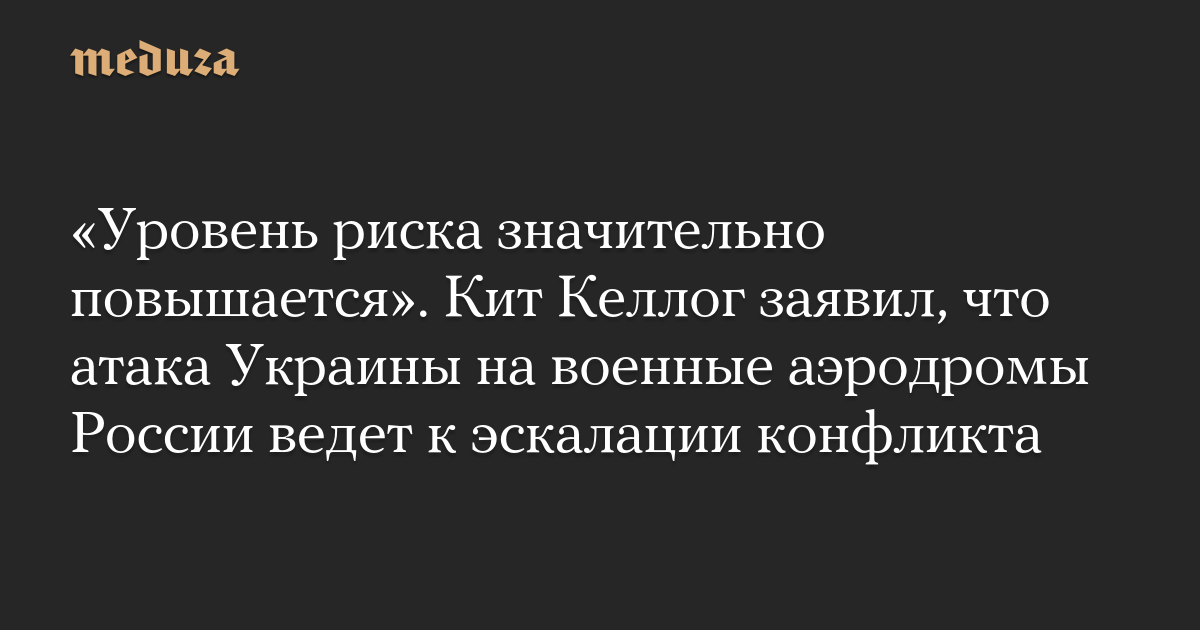 Келлог добавил, что операция украинских спецслужб против российских аэродромов «показала, что Украина не сдается». По его мнению, уровень риска может быть повышен до «неприемлемого» уровня.