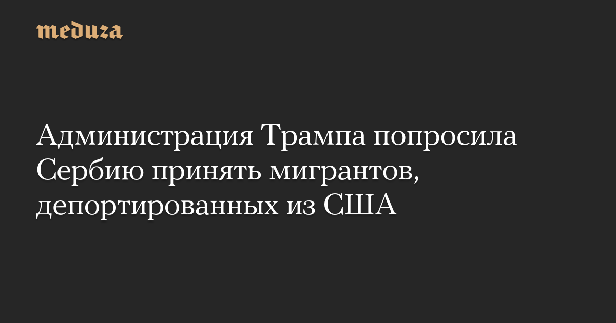 Администрация президента США Дональда Трампа обратилась к Сербии и другим балканским странам с предложением принять мигрантов, депортированных из Соединенных Штатов, сообщает 5 июня Bloomberg, ссылаясь на источники.