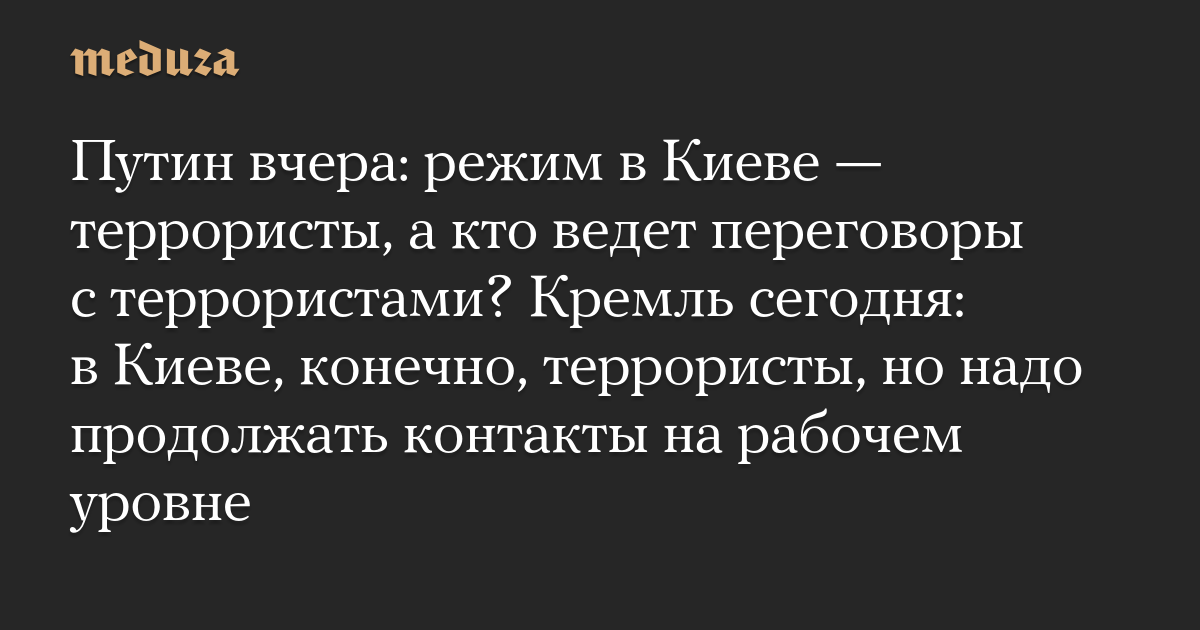 Путин вчера: режим в Киеве — террористы, а кто ведет переговоры с террористами? Кремль сегодня: в Киеве, конечно, террористы, но надо продолжать контакты на рабочем уровне