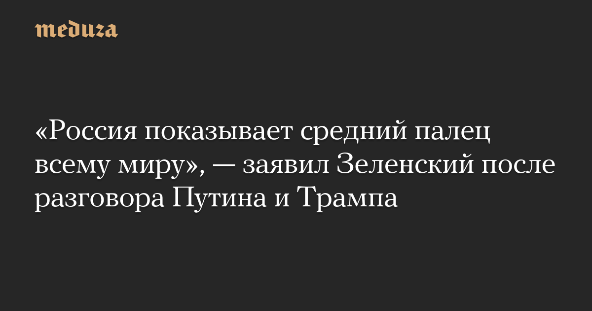 «Россия показывает средний палец всему миру», — заявил Зеленский после разговора Путина и Трампа
