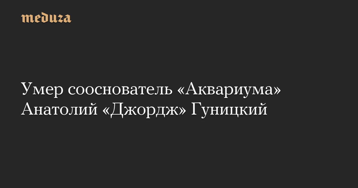В Петербурге в возрасте 71 года умер поэт, драматург, журналист и один из основателей группы «Аквариум» Анатолий Гуницкий (также известен под прозвищами Джордж и Старый рокер). Об этом сообщил Борис Гребенщиков.