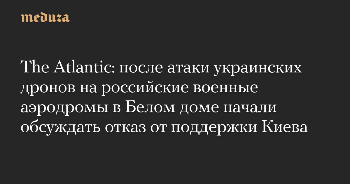 The Atlantic: после атаки украинских дронов на российские военные аэродромы в Белом доме начали обсуждать отказ от поддержки Киева
