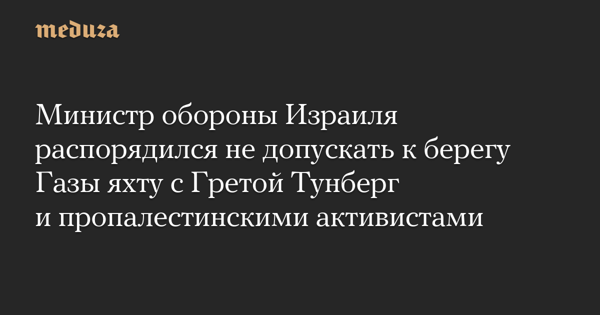 Министр обороны Израиля распорядился не допускать к берегу Газы яхту с Гретой Тунберг и пропалестинскими активистами