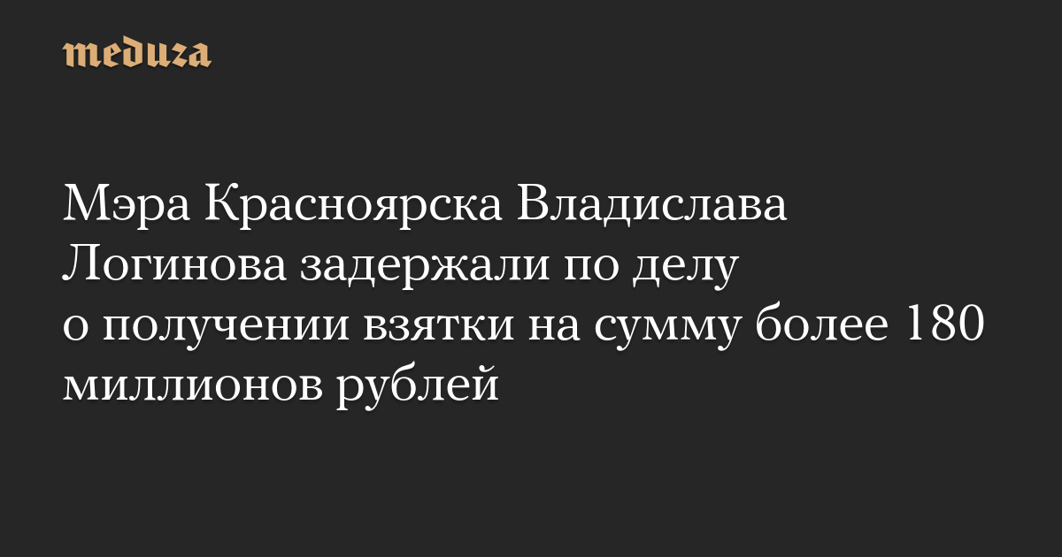 Мэра Красноярска Владислава Логинова задержали по подозрению в получении взятки в особо крупном размере (статья 290 УК), сообщают ТАСС, РИА Новости и местный портал NGS24 со ссылками на источники.