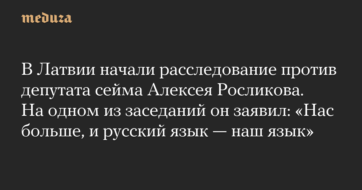 В Латвии начали расследование против депутата сейма Алексея Росликова. На одном из заседаний он заявил: «Нас больше, и русский язык — наш язык»
