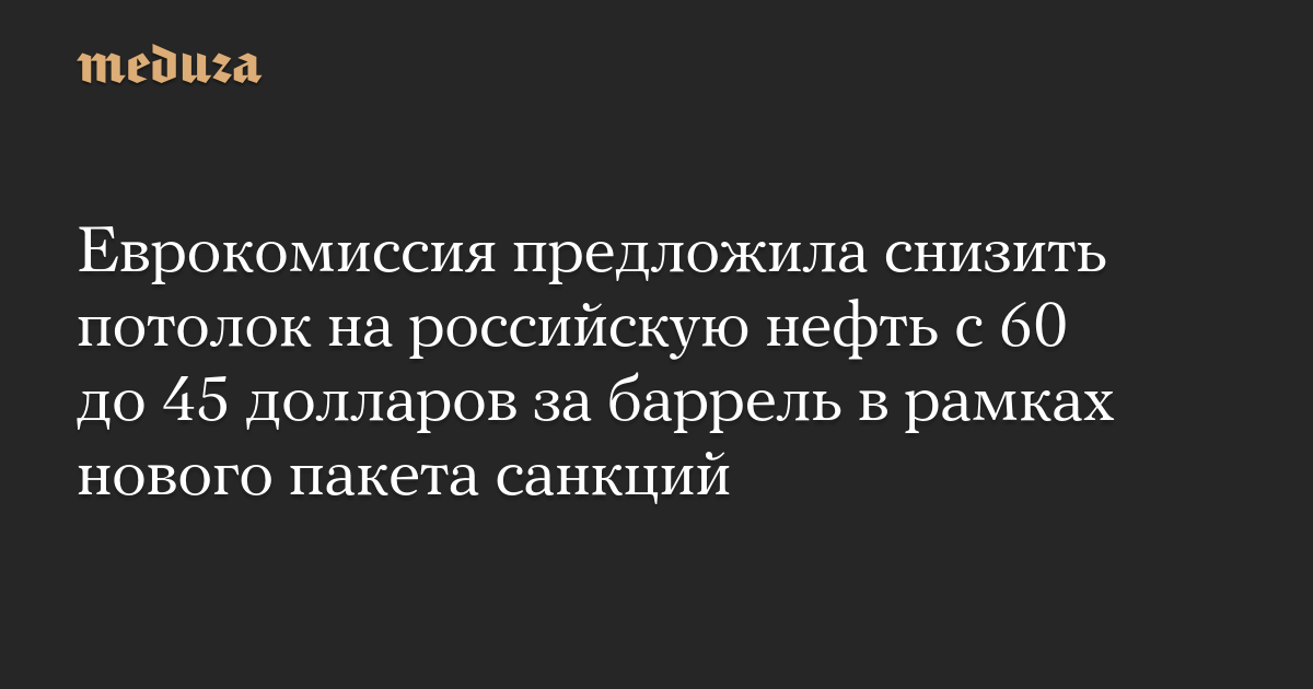 Еврокомиссия предложила снизить потолок на российскую нефть с 60 до 45 долларов за баррель в рамках нового пакета санкций