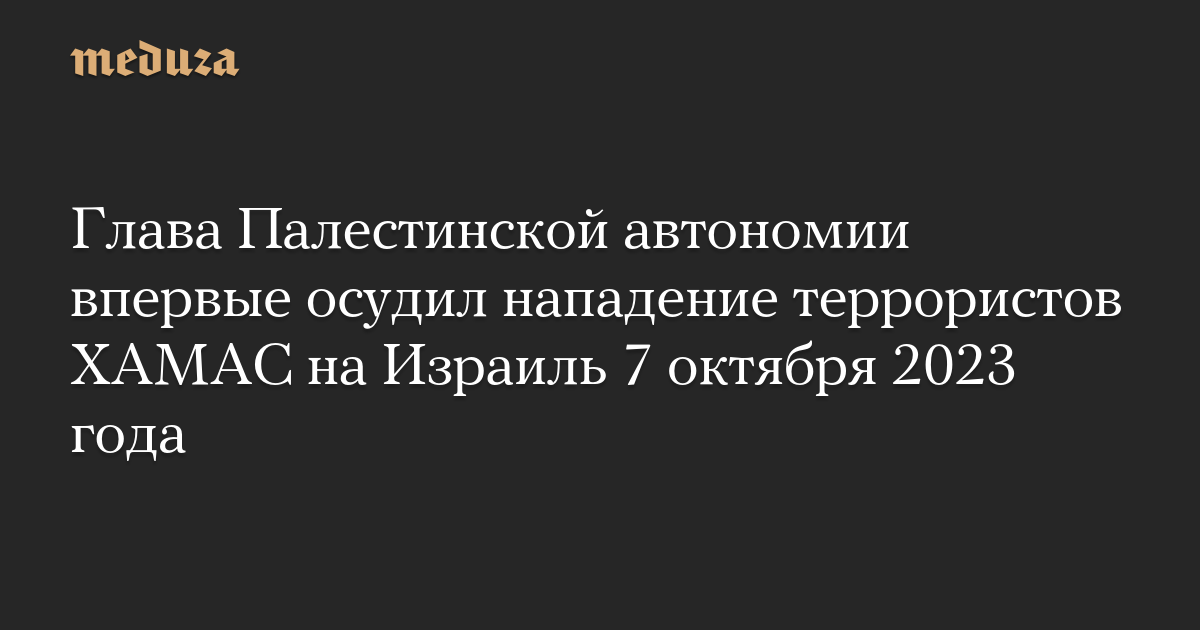Глава Палестинской автономии впервые осудил нападение террористов ХАМАС на Израиль 7 октября 2023 года