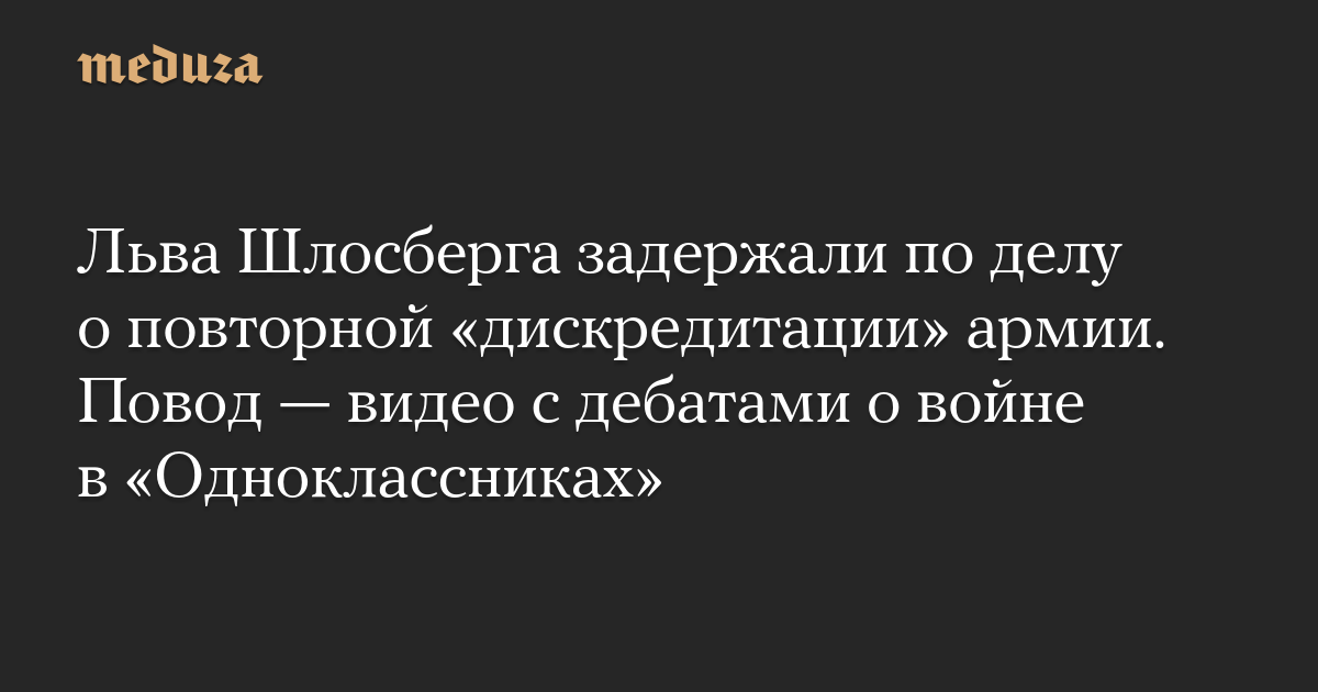 Льва Шлосберга задержали по делу о повторной «дискредитации» армии. Повод — видео с дебатами о войне в «Одноклассниках»