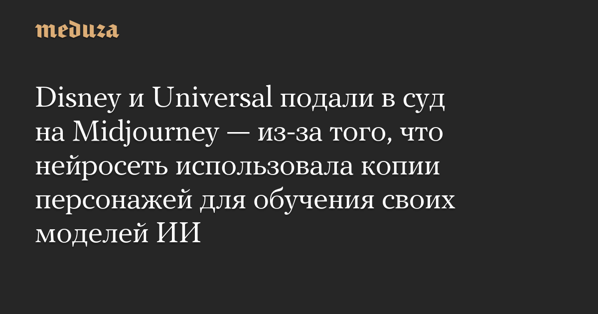 Голливудские студии Disney и Universal подали в Окружной суд Калифорнии иск о нарушении авторских прав к разработчику нейросети Midjourney, которая позволяет генерировать изображения по текстовому запросу с использованием искусственного интеллекта.