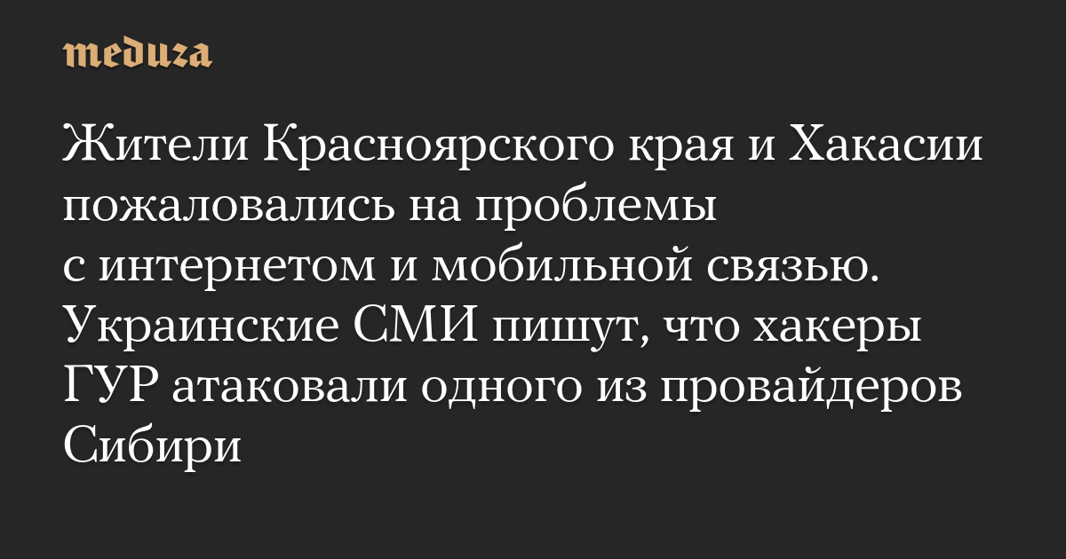 Жители Красноярского края и Хакасии пожаловались на проблемы с интернетом и мобильной связью. Украинские СМИ пишут, что хакеры ГУР атаковали одного из провайдеров Сибири
