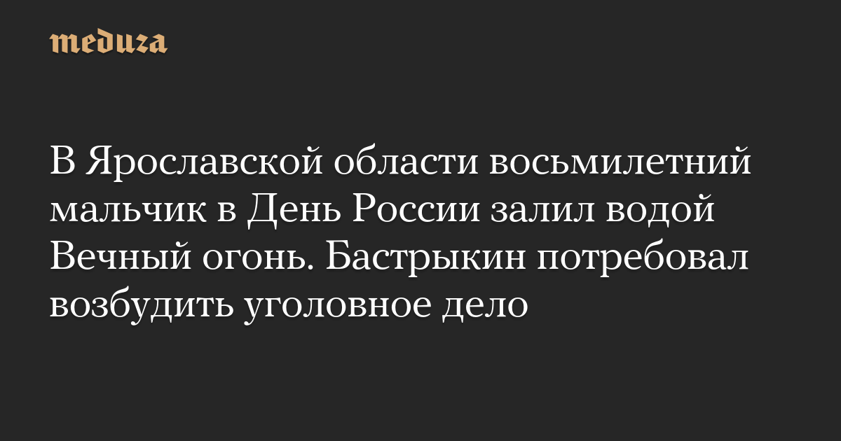 В Ярославской области восьмилетний мальчик в День России залил водой Вечный огонь. Бастрыкин потребовал возбудить уголовное дело