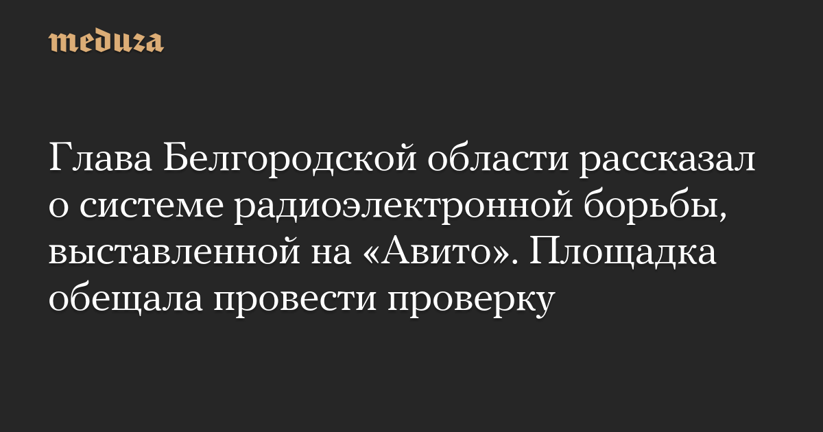 Глава Белгородской области рассказал о системе радиоэлектронной борьбы, выставленной на «Авито». Площадка обещала провести проверку