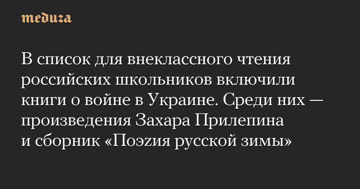 В список для внеклассного чтения российских школьников включили книги о войне в Украине. Среди них — произведения Захара Прилепина и сборник «Поэzия русской зимы»