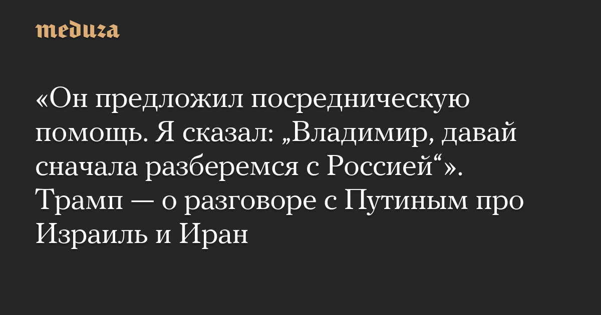 «Он предложил посредническую помощь. Я сказал: „Владимир, давай сначала разберемся с Россией“». Трамп — о разговоре с Путиным про Израиль и Иран