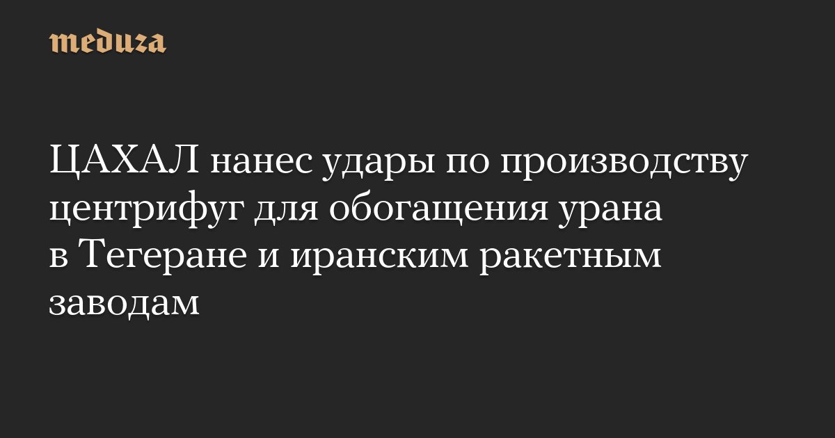 ЦАХАЛ нанес удары по производству центрифуг для обогащения урана в Тегеране и иранским ракетным заводам