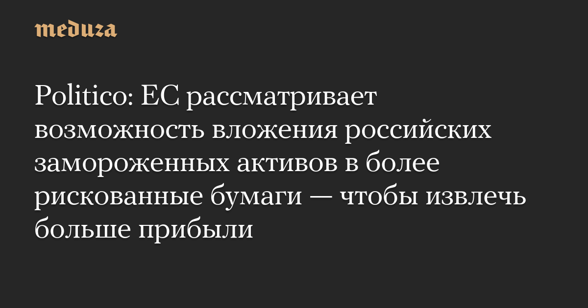 Politico: ЕС рассматривает возможность вложения российских замороженных активов в более рискованные бумаги — чтобы извлечь больше прибыли