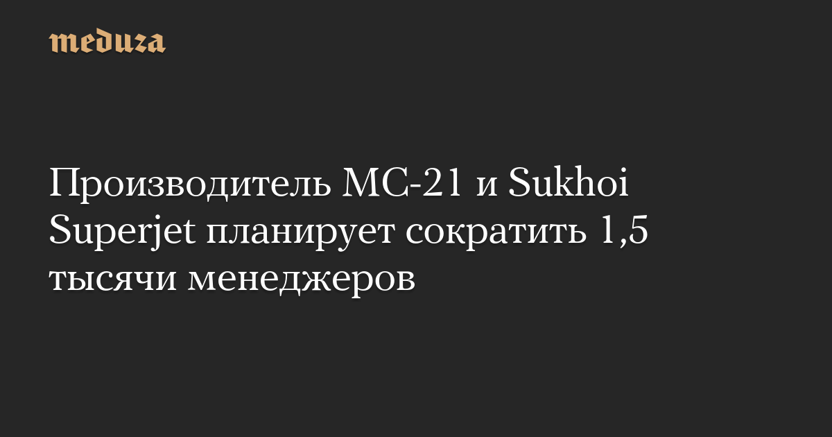 Производитель МС-21 и Sukhoi Superjet планирует сократить 1,5 тысячи менеджеров