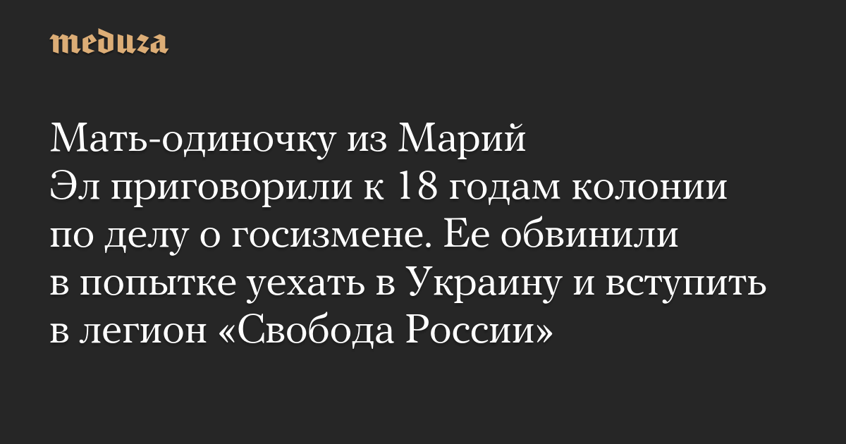 Мать-одиночку из Марий Эл приговорили к 18 годам колонии по делу о госизмене. Ее обвинили в попытке уехать в Украину и вступить в легион «Свобода России»