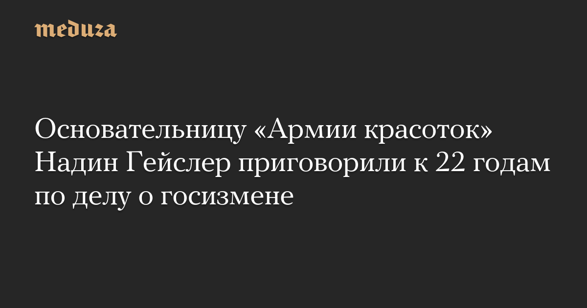 Основательницу «Армии красоток» Надин Гейслер приговорили к 22 годам по делу о госизмене