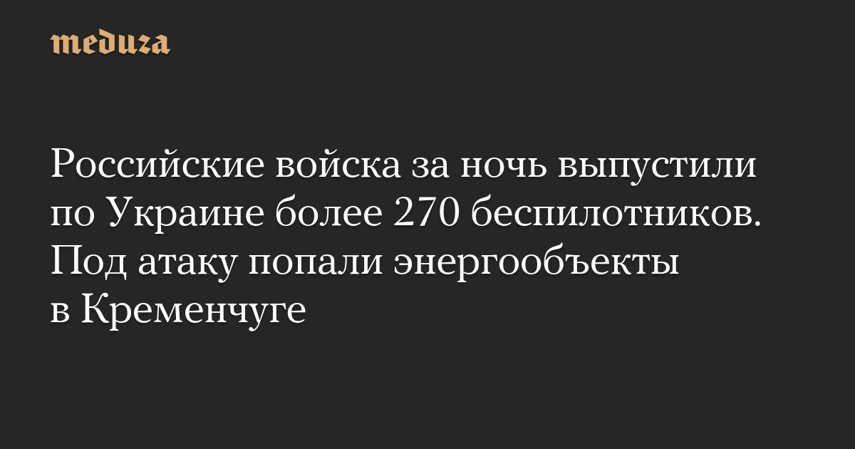 Российские войска за ночь выпустили по Украине более 270 беспилотников. Под атаку попали энергообъекты в Кременчуге