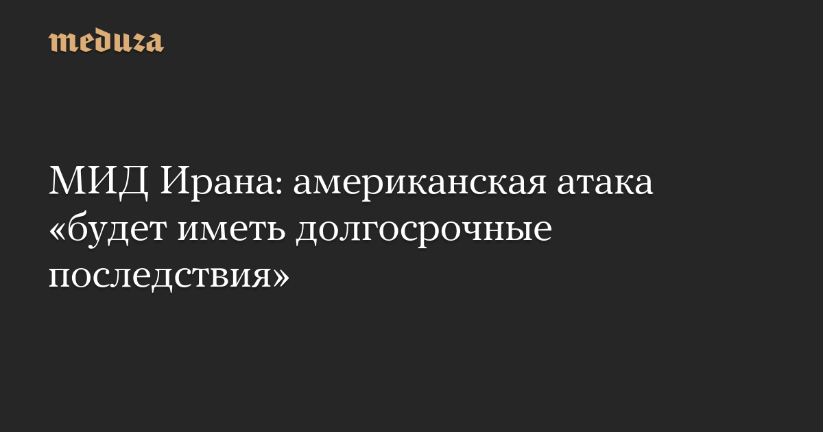 МИД Ирана: американская атака «будет иметь долгосрочные последствия»