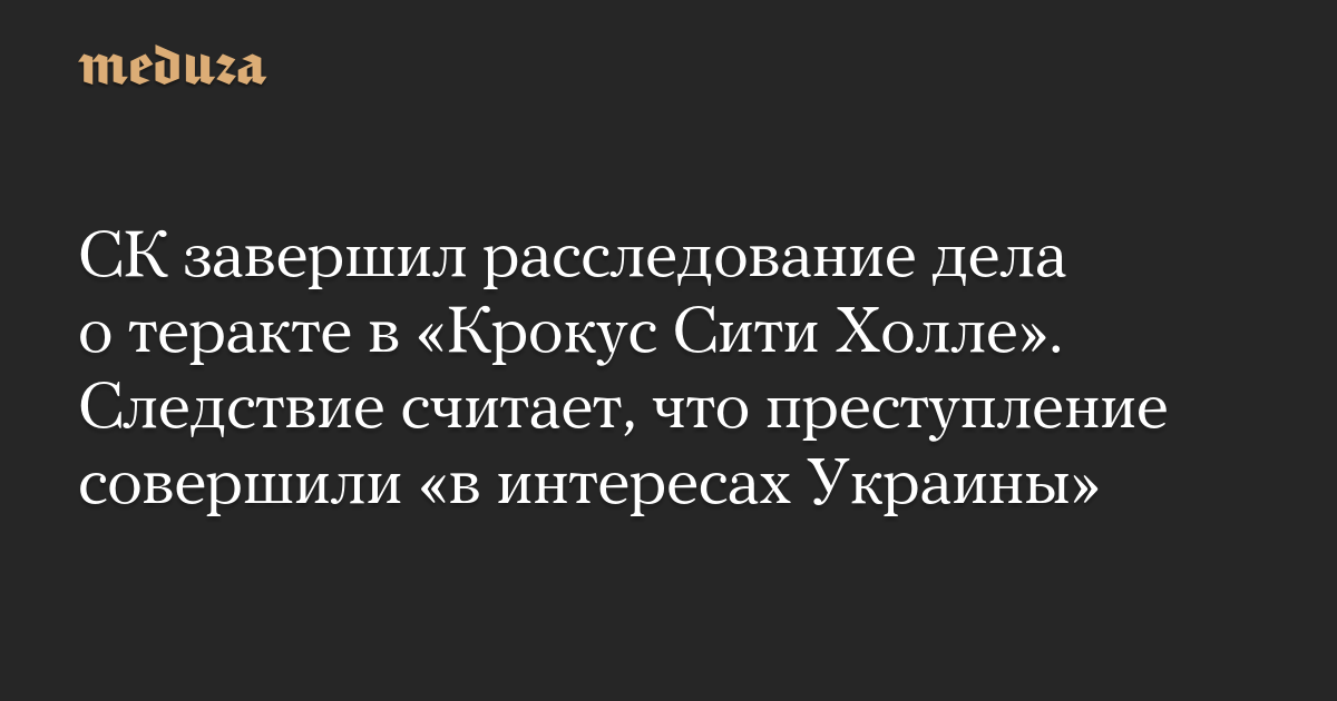 СК завершил расследование дела о теракте в «Крокус Сити Холле». Следствие считает, что преступление совершили «в интересах Украины»