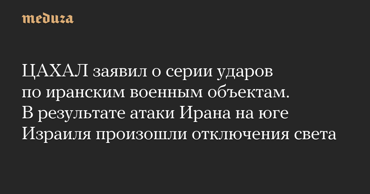 ЦАХАЛ заявил о серии ударов по иранским военным объектам. В результате атаки Ирана на юге Израиля произошли отключения света