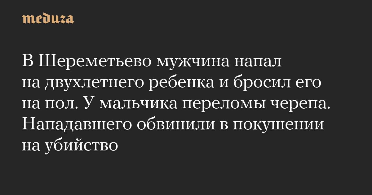 В Шереметьево мужчина напал на двухлетнего ребенка и бросил его на пол. У мальчика переломы черепа. Нападавшего обвинили в покушении на убийство