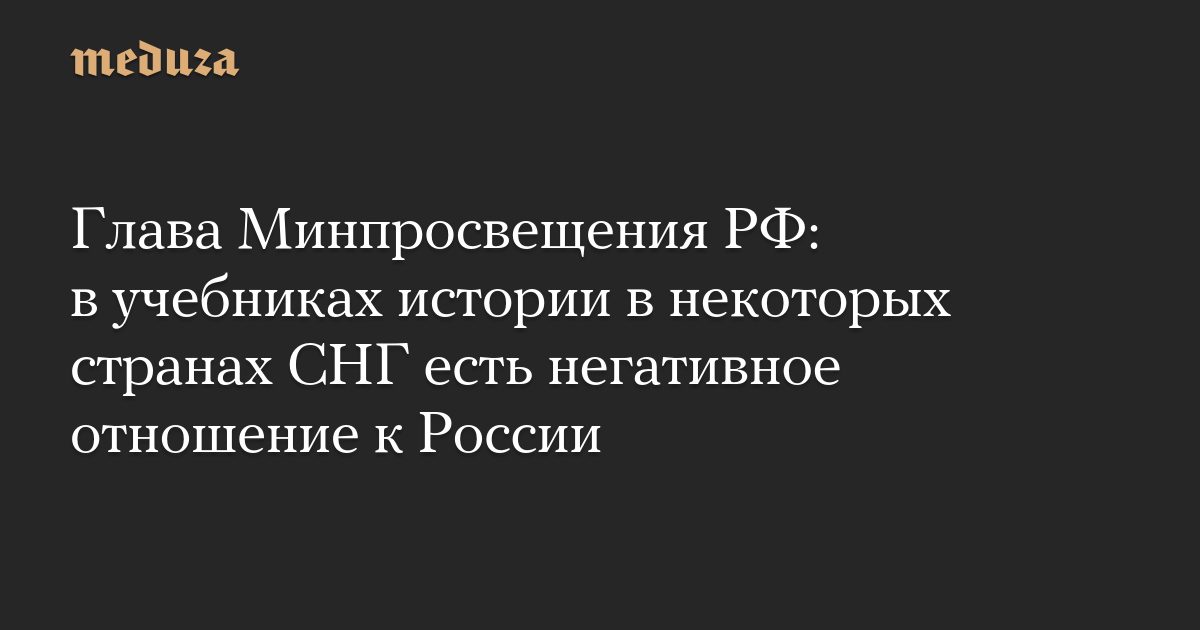 Глава Минпросвещения РФ: в учебниках истории в некоторых странах СНГ есть негативное отношение к России