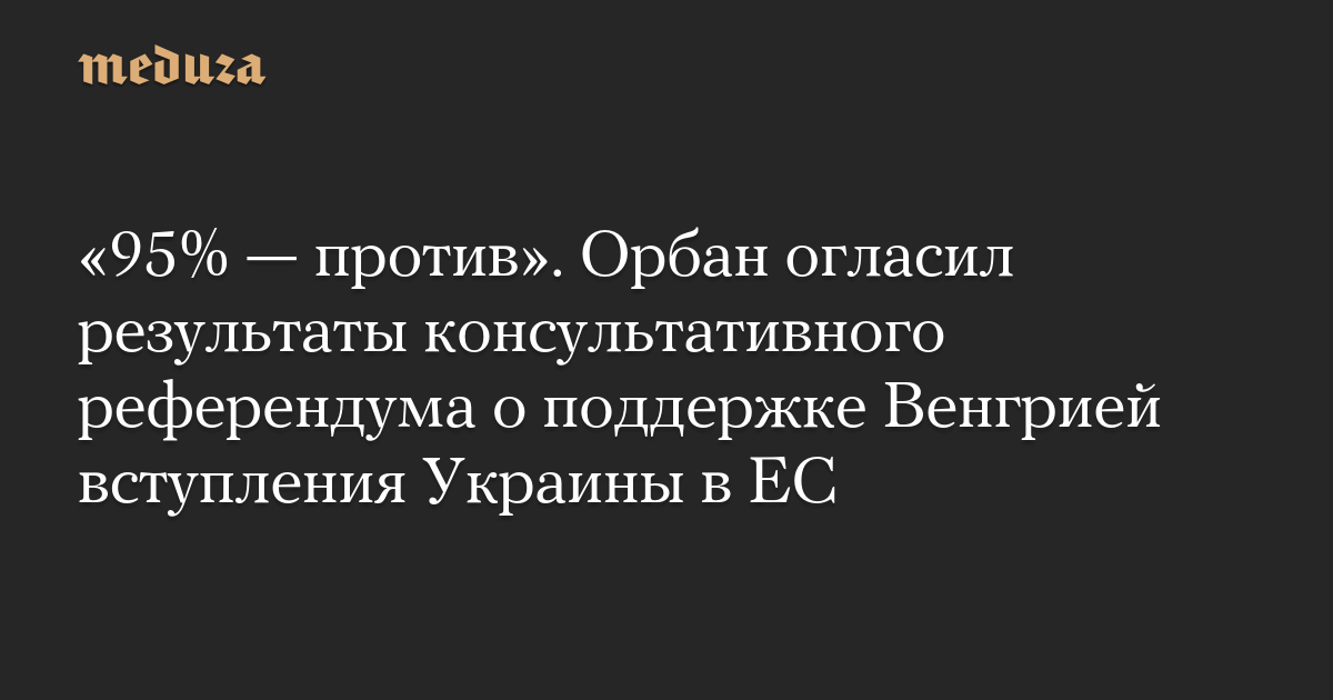 «2 миллиона 168 тысяч наших соотечественников проголосовали за то, чтобы не брать на себя риски вступления Украины в ЕС. Это 95% всех действительных голосов», — написал Орбан в своем фейсбуке.