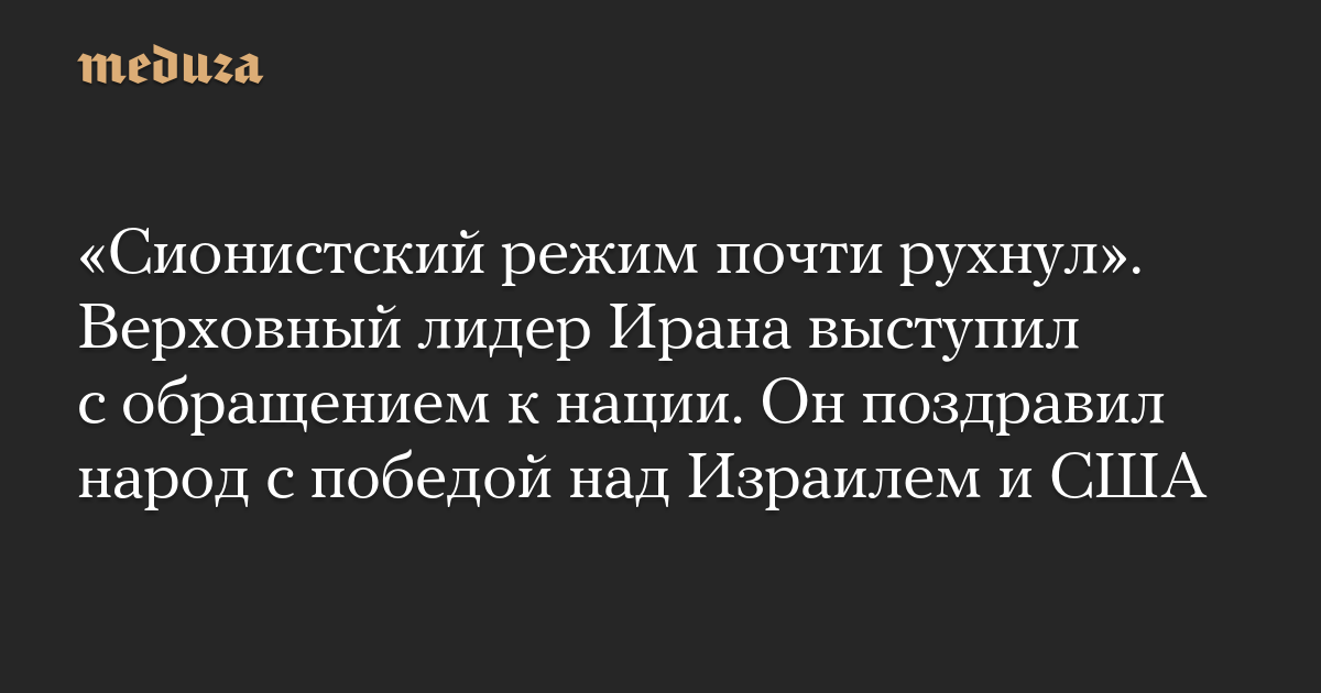 «Сионистский режим почти рухнул». Верховный лидер Ирана выступил с обращением к нации. Он поздравил народ с победой над Израилем и США