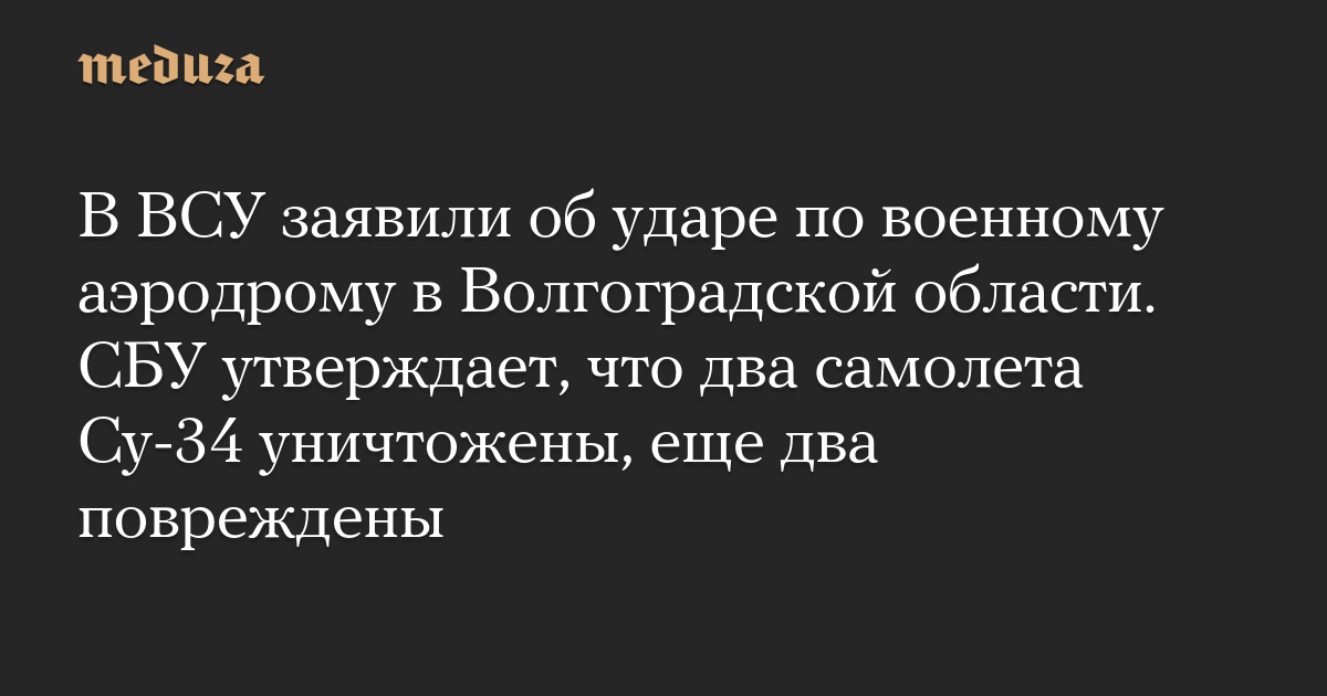 В ВСУ заявили об ударе по военному аэродрому в Волгоградской области. СБУ утверждает, что два самолета Су-34 уничтожены, еще два повреждены