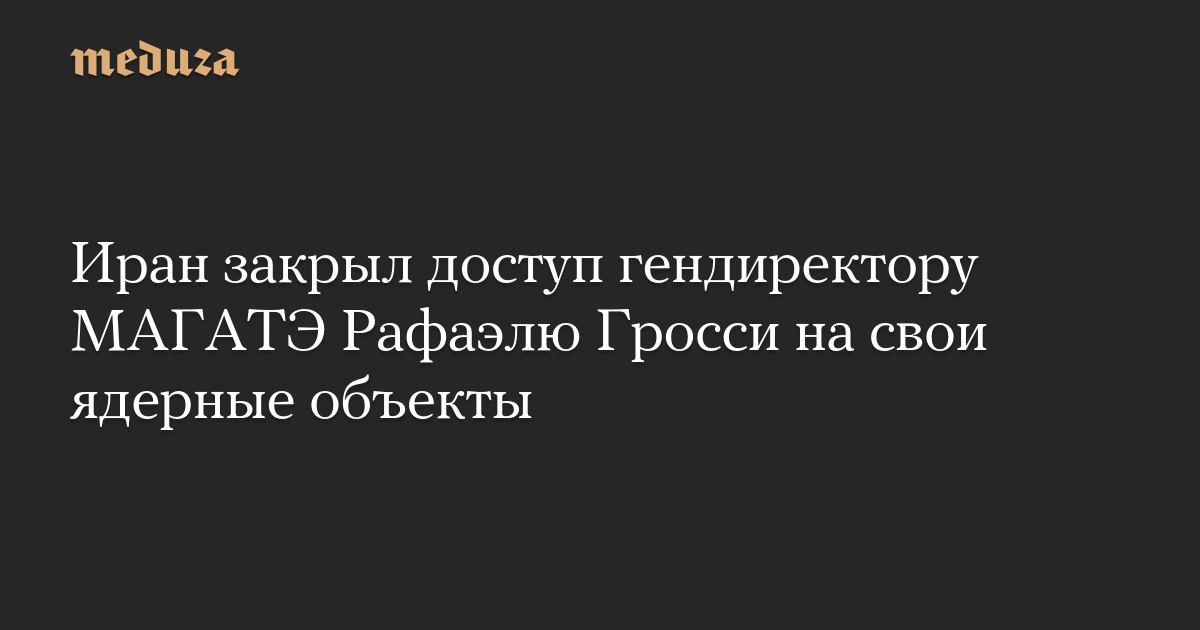 Иран закрыл доступ гендиректору МАГАТЭ Рафаэлю Гросси на свои ядерные объекты
