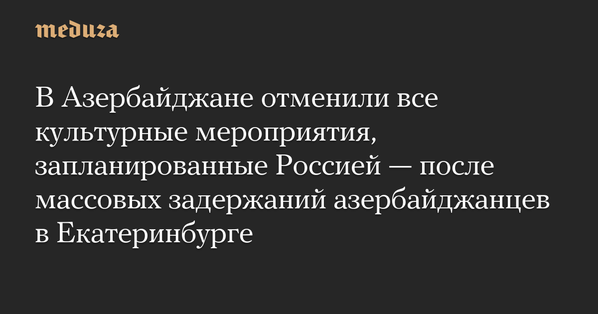 В Азербайджане отменили все культурные мероприятия, запланированные Россией — после массовых задержаний азербайджанцев в Екатеринбурге