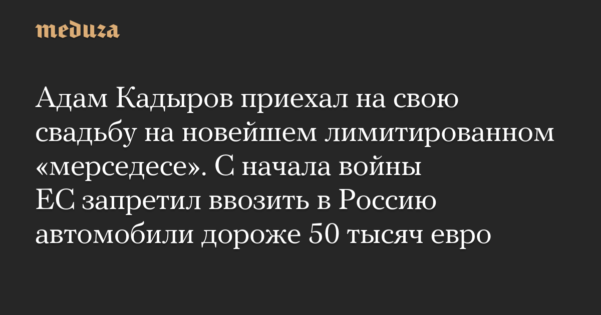 Адам Кадыров приехал на свою свадьбу на новейшем лимитированном «мерседесе». С начала войны ЕС запретил ввозить в Россию автомобили дороже 50 тысяч евро