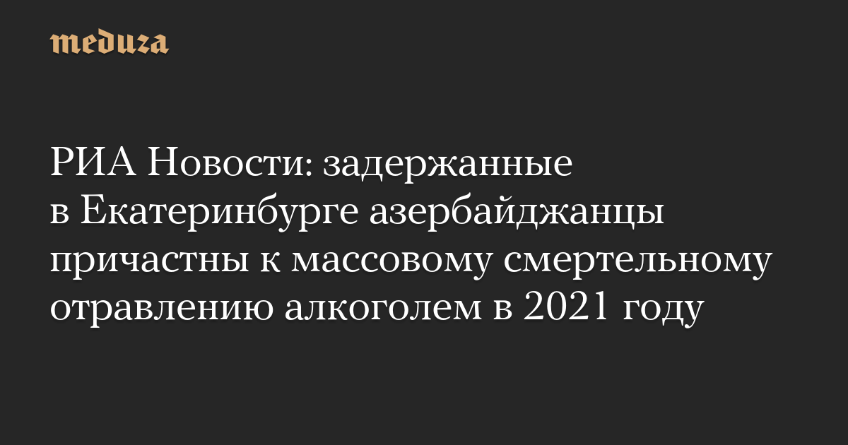 РИА Новости: задержанные в Екатеринбурге азербайджанцы причастны к массовому смертельному отравлению алкоголем в 2021 году